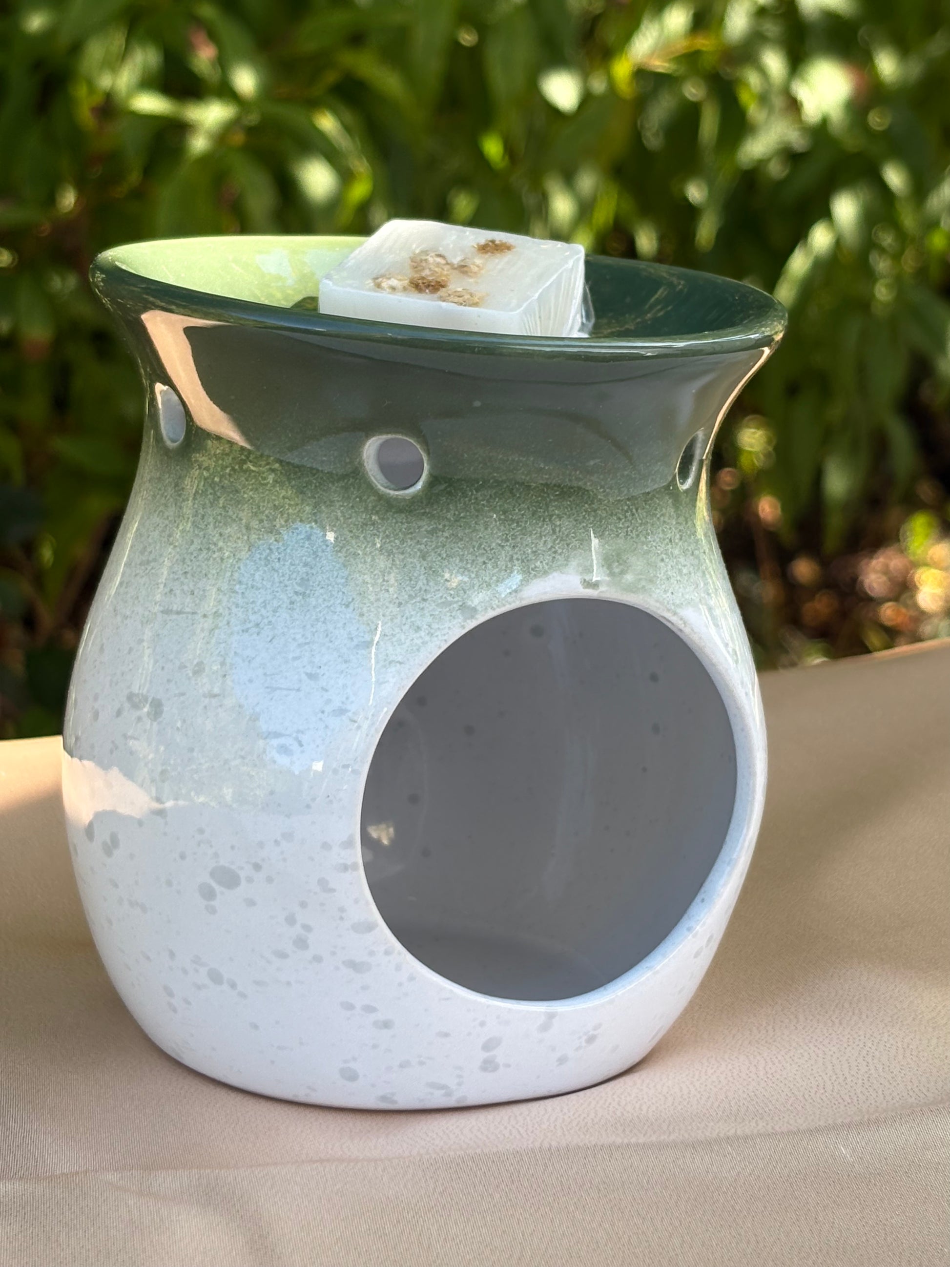 Ce brûleur aux formes arrondies et au dégradé de vert en céramique donnera de la douceur à votre intérieur.